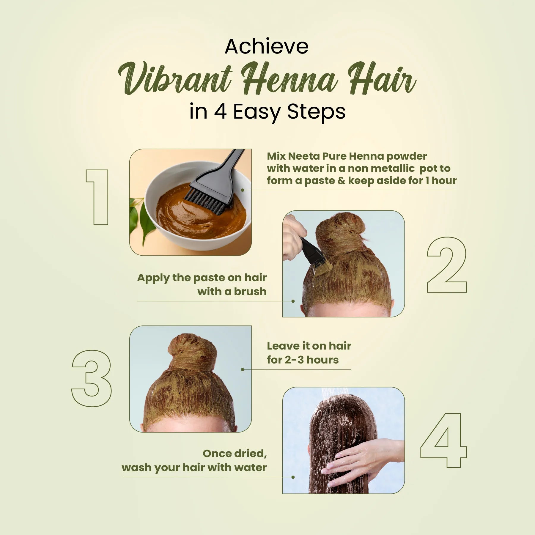 Get Neeta Pure Heena and say goodbye to dull, lifeless hair and embrace the lush, conditioning hair.