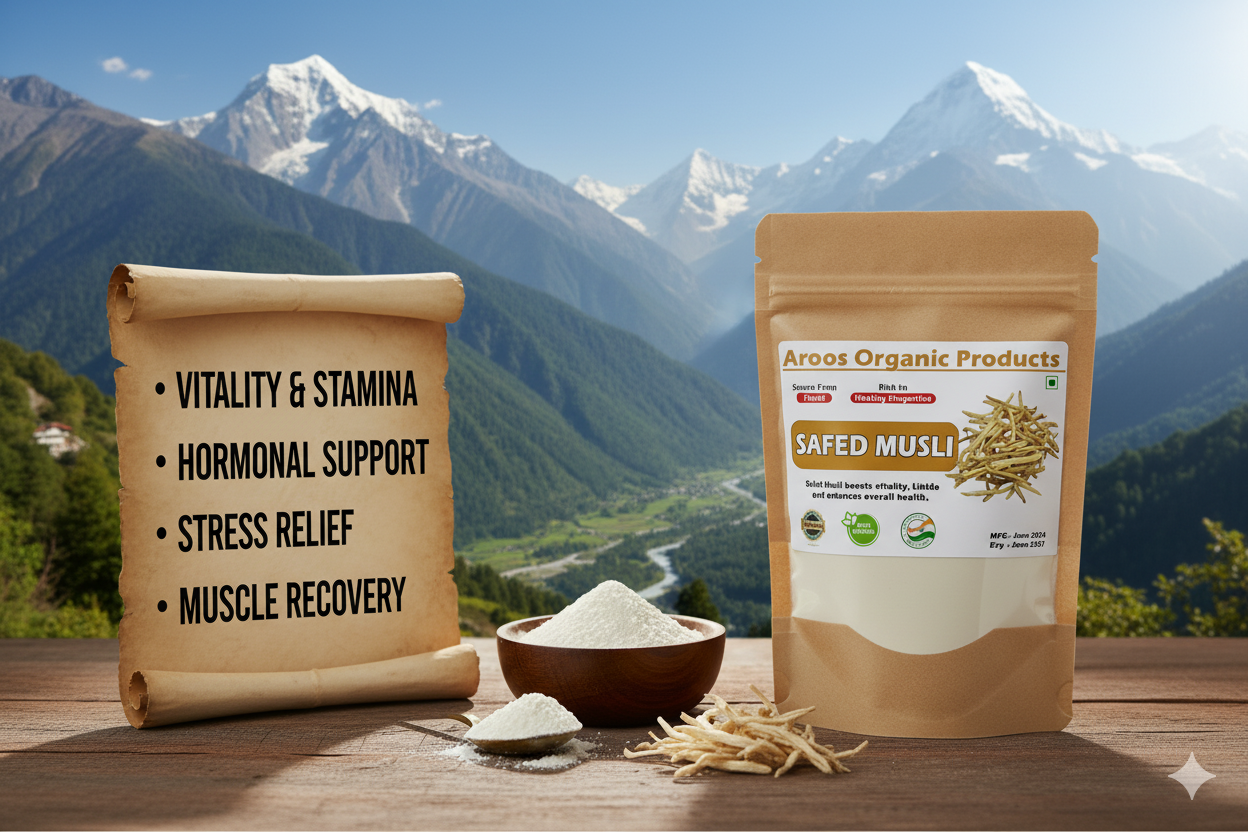 Aroos Organic Safed Musli Powder: Your Natural Key to Vitality and Stamina
